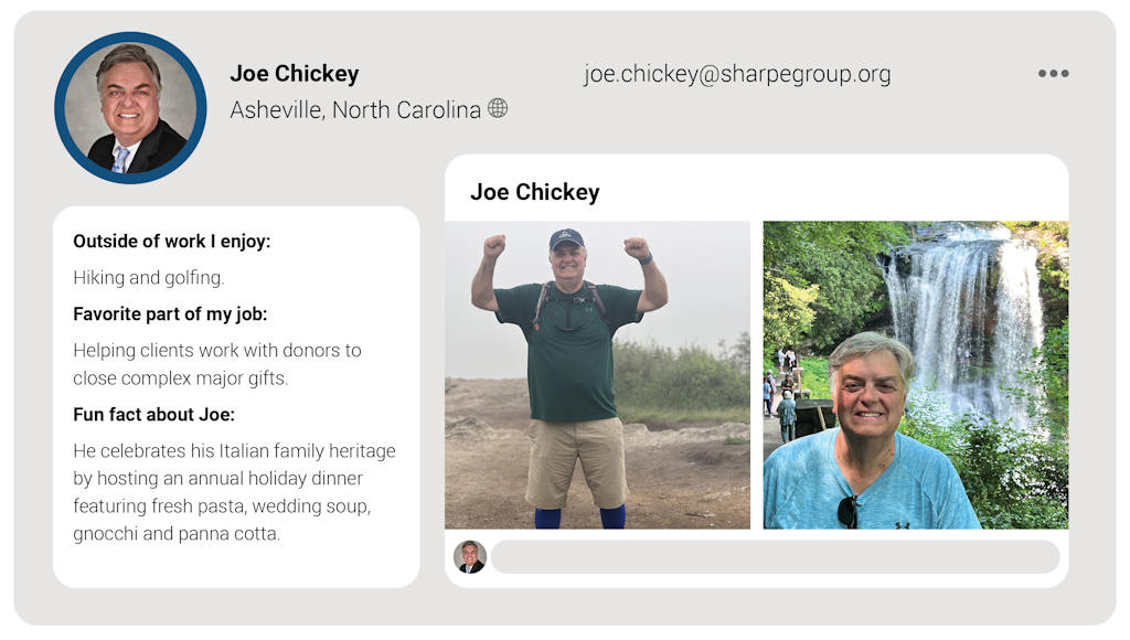 Joe brings more than 30 years of experience in the charitable arena, with a focus on gift planning. Based in Asheville, North Carolina, Joe has spoken locally, regionally and nationally on planned giving to estate planning councils, community foundations, AFP, CASE and CGP groups. His engaging style creates upbeat and helpful peer interactions when speaking on relevant topics, especially ethical issues in fundraising.