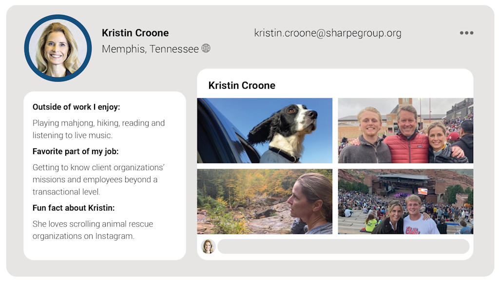 Kristin is a Sharpe Group senior consultant with a JD. She has worked for both law and accounting firms in the areas of tax and estate planning and has served as director of planned giving and legal counsel for the Community Foundation of Greater Memphis. She brings valuable experience in donor stewardship as well as tax and estate planning law.